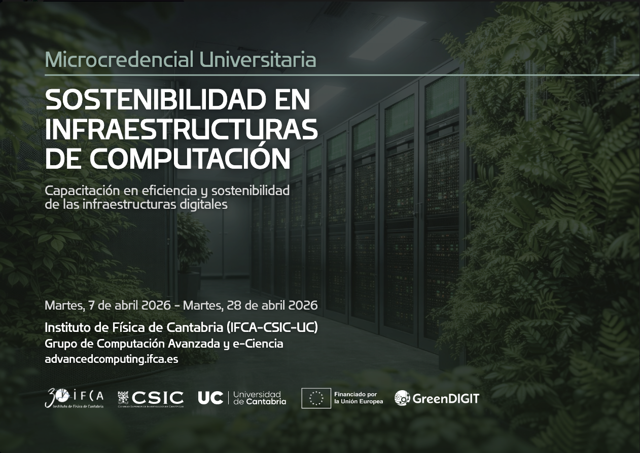 En Santander, a 17 de febrero de 2026.- El Instituto de Física de Cantabria (IFCA, CSIC-UC) acogerá el próximo mes de abril la Microcredencial Universitaria en Sostenibilidad en Infraestructuras de Computación, un programa formativo impulsado por la Universidad de Cantabria (UC). La formación se desarrollará de manera presencial en las instalaciones del instituto y será impartido por investigadores del grupo de Computación Avanzada y e-Ciencia.